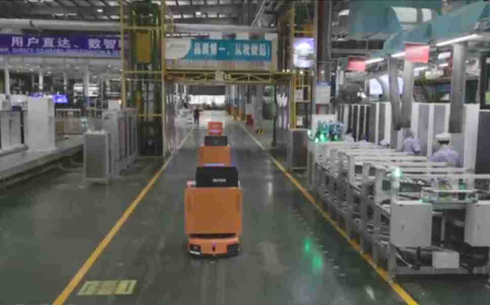 为车载冰箱物流配送打造的智能解决方案,,,包含产中物流通过潜伏举升AMR搬运至线边,,,产后成品物流智能仓储,,流程包含产中物流智能齐套入库,,线边安灯叫料AMR智能配送至线边,,成品入库、、、、出库,,通过无人堆高车机器人,,,智能仓储管理替代人工作业管理,,,实现更高存储、、、更高效率、、、更具柔性化的解决方案。。。